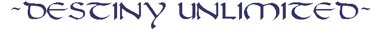 That's me. Actually DESTINY UNLIMITED is my company's name. I'm a professional Psychic, a Psychic therapist, and a practicing witch. I chose DESTINY UNLIMITED because I truly believe that our destiny is unlimited. However, it is our own responsibility to plan and chart our course. (Sceptics please note: We are coming into a new Era of Enlightenment. In the coming Age we will be more aware of our senses. Especially our psychic sense. The new millenium brings many changes, so be prepared!) The best way to do this is to establish a rapport with a professional Psychic. One with whom you feel comfortable. Choose someone you feel understands you. For instance a man may feel more at ease with another man and a woman may want another woman. It is very important to be able to relate to your Psychic because this is the person with whom you will be sharing your innermost feelings. You must be able to trust this person without questioning their advice. If you question the advice of a Psychic, then that is not the right one for you. At this time I want to caution you to avoid anyone who would try to take advantage of you financially. The best way to avoid being ripped off by a "phony" psychic is to call first and ask how much they charge for a consultation. A reputable psychic should not have a "laundry list" of services and different types of readings. A reading is a reading whether it is done with cards, a crystal ball, palmreading or any other means. And the price should be the same regardless of the method used. I personally frown upon a psychic using a timer or watching the clock too closely. I never time my readings. However, you should be considerate and not take up too much time with redundant questions. The last type of psychic you should avoid is one who tells you that you have bad luck or that you are cursed, and then proceeds to tell you how much they charge to remove the curse and restore your good luck. That kind of psychic gives reputable psychics a really bad name. If you run into one my advice is run the other way and report them to your local police because what they are doing is illegal! Now, once you have chosen your personal Psychic, have her/him chart out a course and direction for your life and continue from there. You may check back occassionally with your Psychic to be sure you are making the right decisions. But it is up to you to have confidence in yourself and to live your own life. Whenever consulting your Psychic it is always important to make notes of the advice you are given. And check your notes often. Remember, there are many curves and detours on the road of life. But a good Psychic will be able to alert you to any obstacles along the way. She/he can also alert you to the times when you need to slow down and enjoy the scenery.You'll also be able to tell which people to include in your trip and who to leave behind. You won't want any excess baggage! So choose your Psychic wisely and get started on your journey through the rest of your life. It's never too late to get started. How many times have you said " If only I had known....". Well, take my advice and there will never be a need to say that again. Good luck